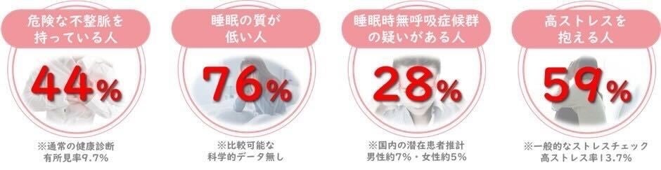 ココロミルが提供する心電図解析サービス「ホーム心臓ドック®」では、「隠れた心疾患」「睡眠の質と睡眠時無呼吸症候群」「ストレス」という3つの健康リスクを可視化します。
