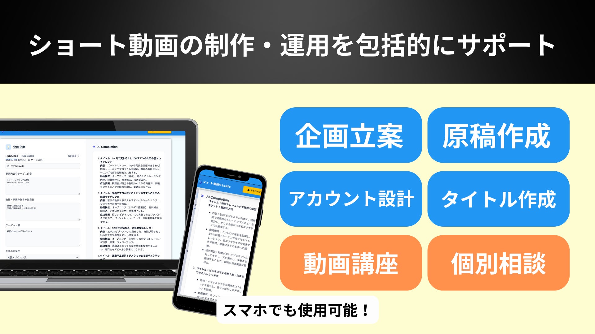 AIでショート動画マーケティングが劇的に楽に!企画立案や原稿作成を自動化するAIサービス「ショート動画Studio」の提供を開始します。