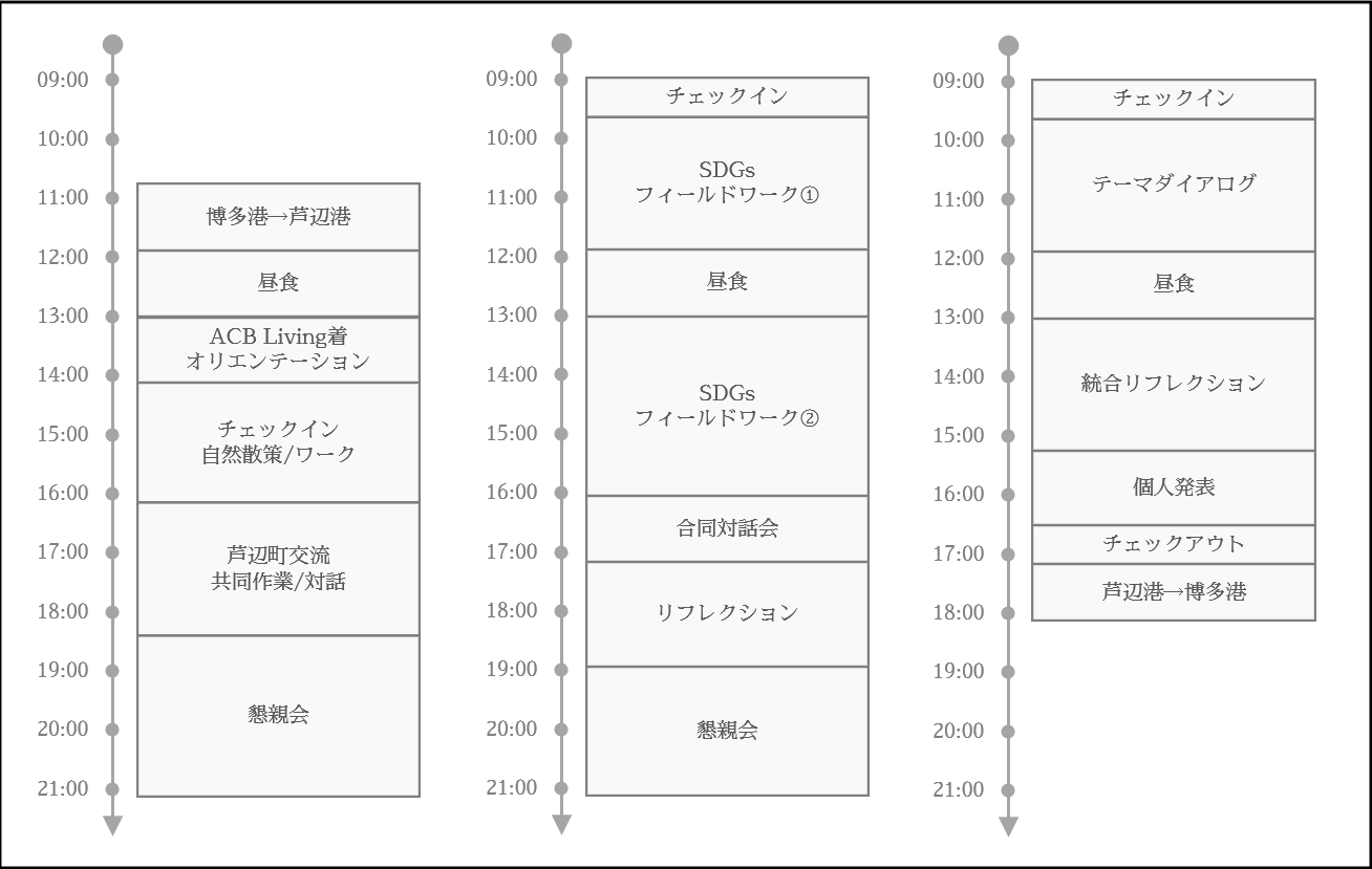 各人の立場や見解に固執せず、参加者が互いに聴き合い、共感し、共に壱岐で見つけた問いの答えを探求していきます。