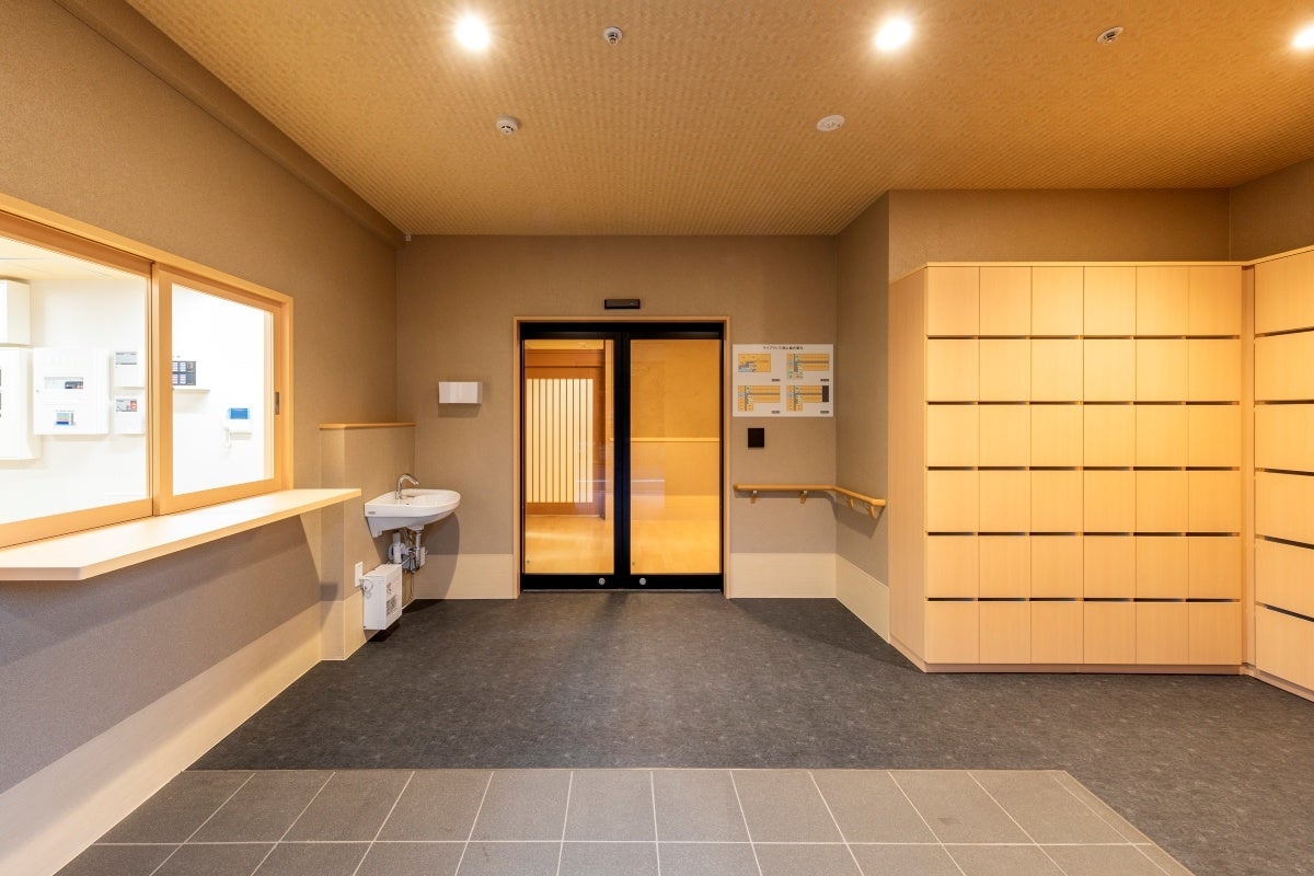 居室設備:洗浄機能付きトイレ、洗面台、介護用電動ベッド、緊急時コールボタン、