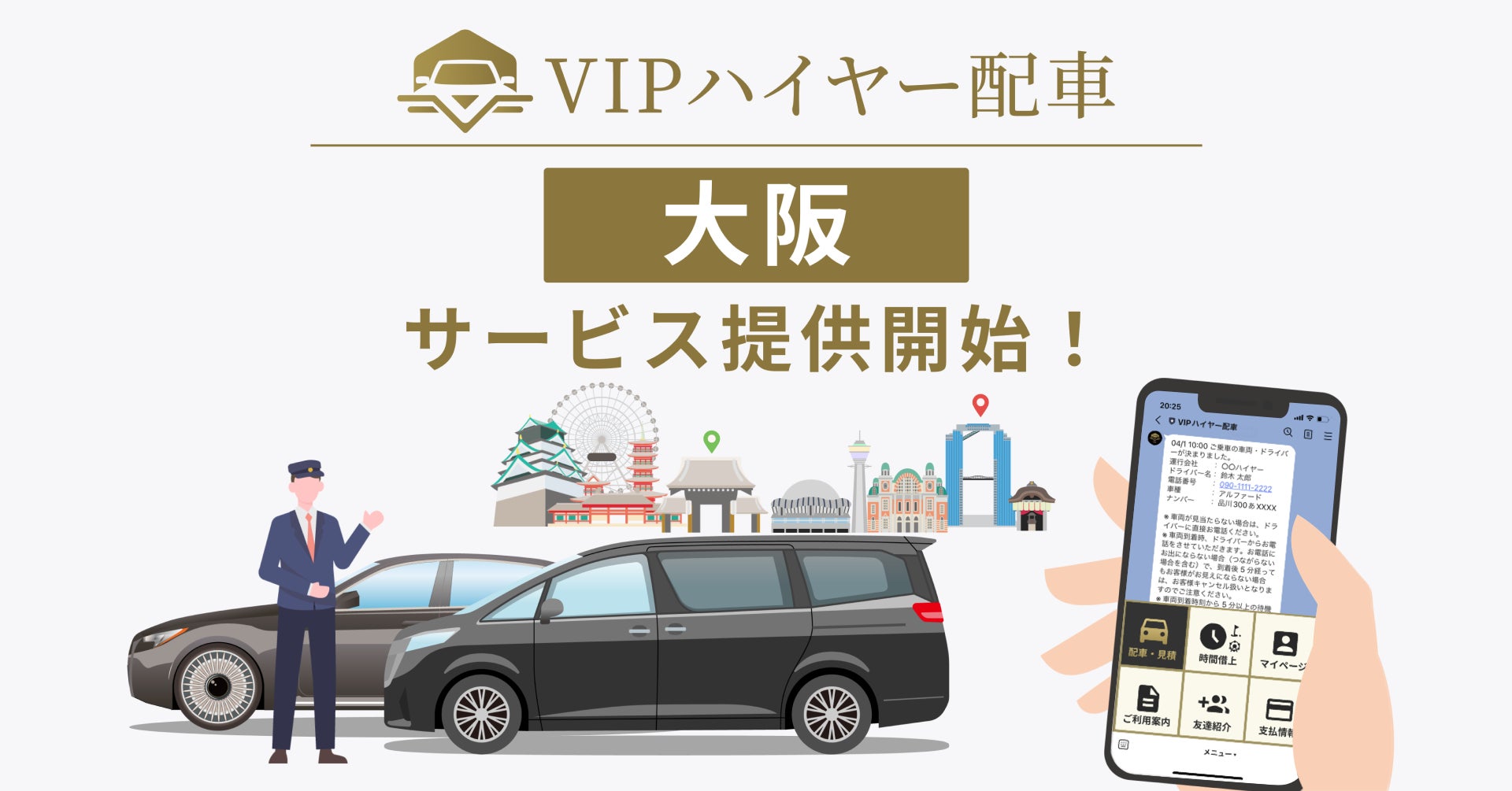 LINEからハイヤーを呼べる「VIPハイヤー配車」、大阪でのサービス提供を開始
