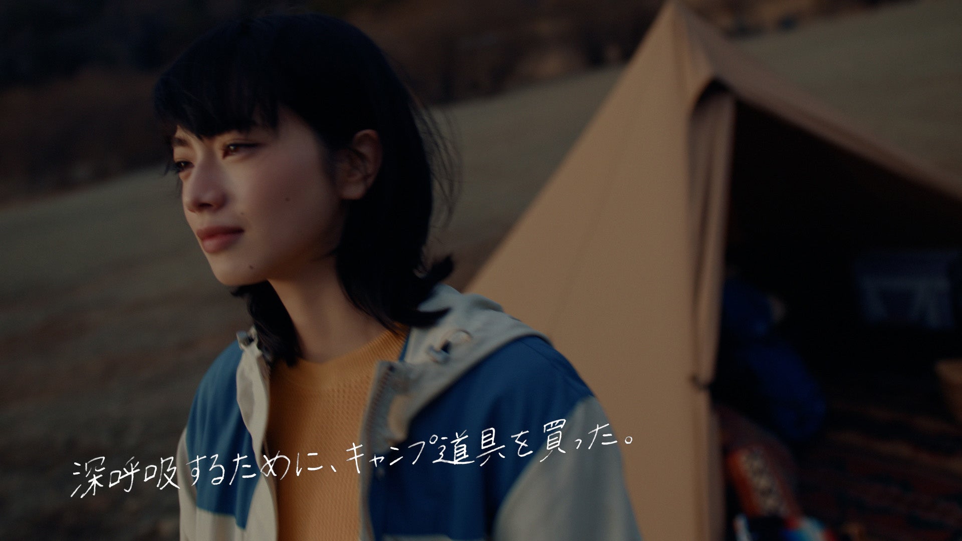 「キャンプ道具」篇―「深呼吸するために、キャンプ道具を買った。」という言葉と共に、ゆっくりと深呼吸をし、ソロキャンプを通じて自分と向き合う姿を描く。