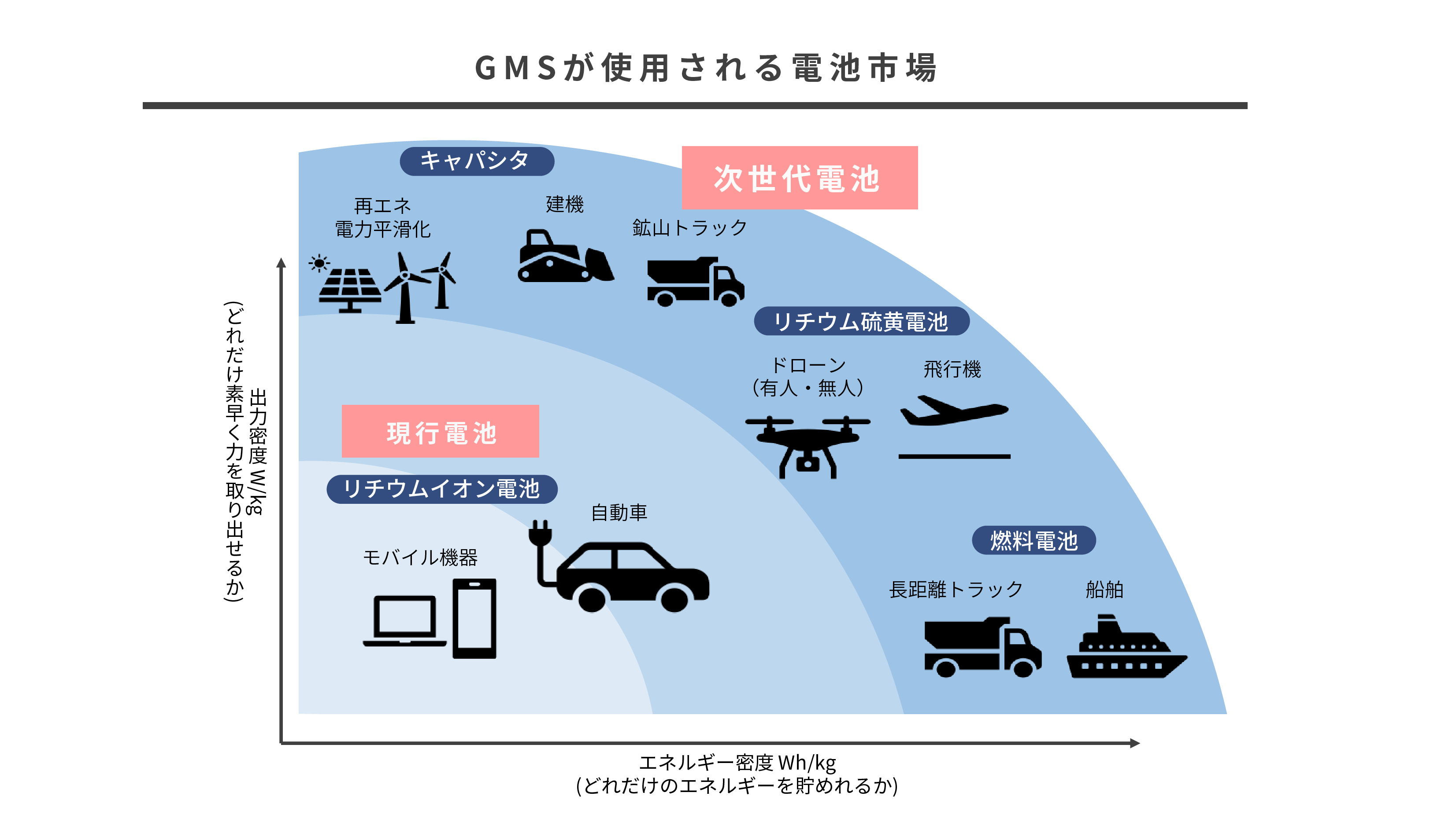 2050年のカーボンニュートラル社会の達成に向け、工場設備の電化や製品のEV化など、企業の脱炭素化に向けた動きはますます加速しています。GMSは、エネルギーの電化を支える次世代電池の開発に向けた企業の取り組みを加速させてまいります。