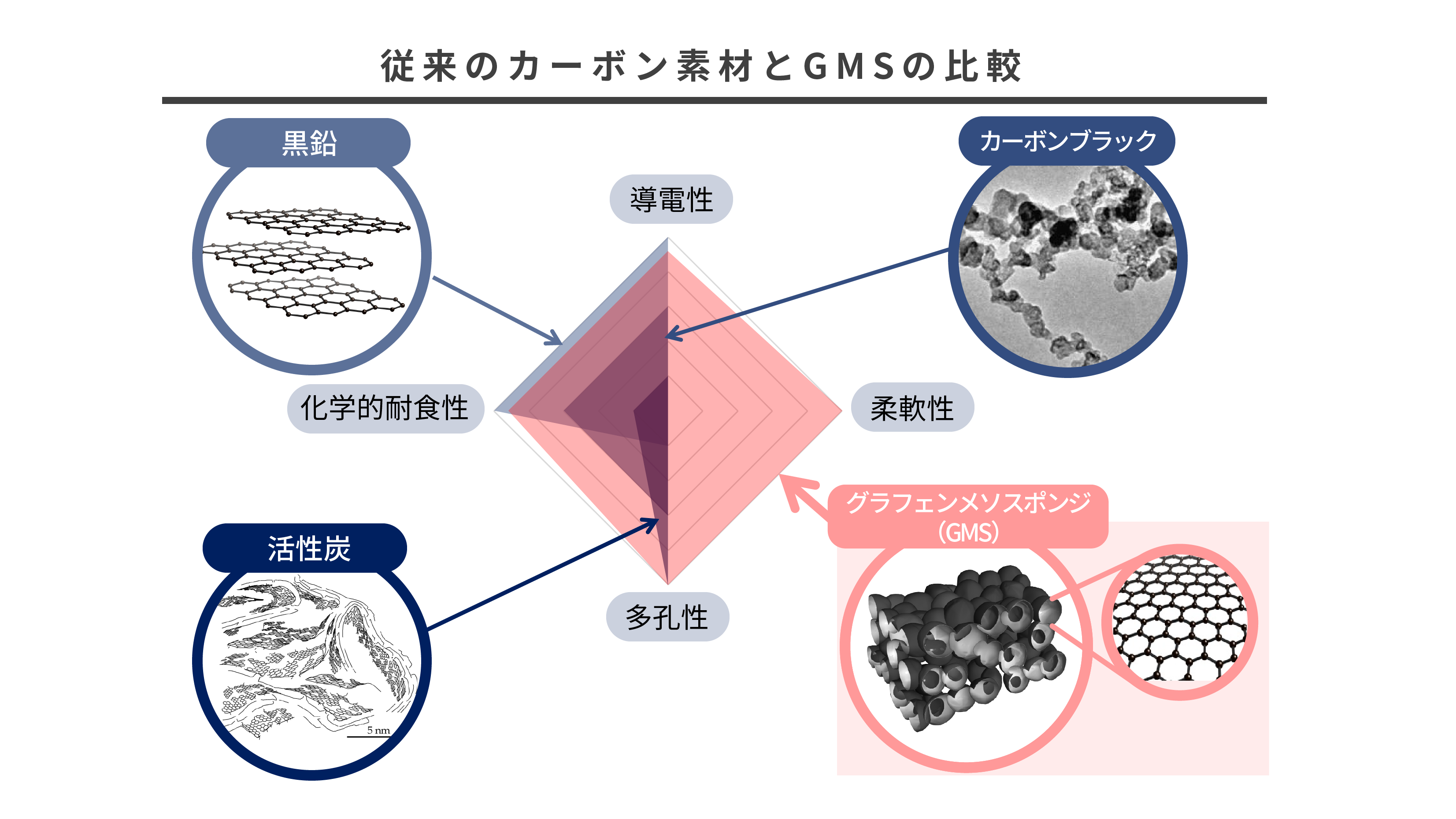 - 独自開発の新カーボン材料「グラフェンメソスポンジ (GMS) 」とは