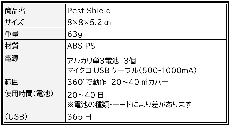 電池を入れるだけ!USB挿すだけ! カートリッジの購入・交換不要! 寝ている間もOK! 詳しくはこちら→https://www.makuake.com/project/pest-shield/