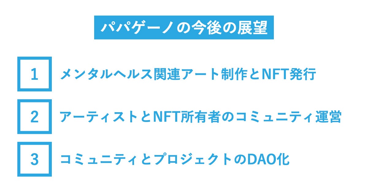 私たちは、Web3によって自立分散型組織が活躍しやすいインフラが整うことでメンタルヘルスケアにおける「自助」及び「互助」の取り組みを拡充できると考えております。まずはメンタルヘルス不調や精神疾患当事者のアート作品の企画、制作、販売、NFTの発行、コミュニティの運営を通じて、当事者の視点から自助・互助の取り組みを促進できないかを模索します。