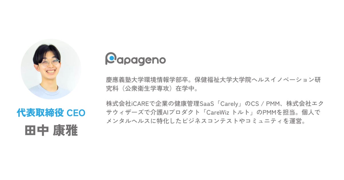 株式会社iCAREで企業の健康管理SaaS「Carely」のCS / PMM、株式会社エクサウィザーズで介護AIプロダクト「CareWiz トルト」のPMMを担当。個人でメンタルヘルスに特化したビジネスコンテストやコミュニティを運営。