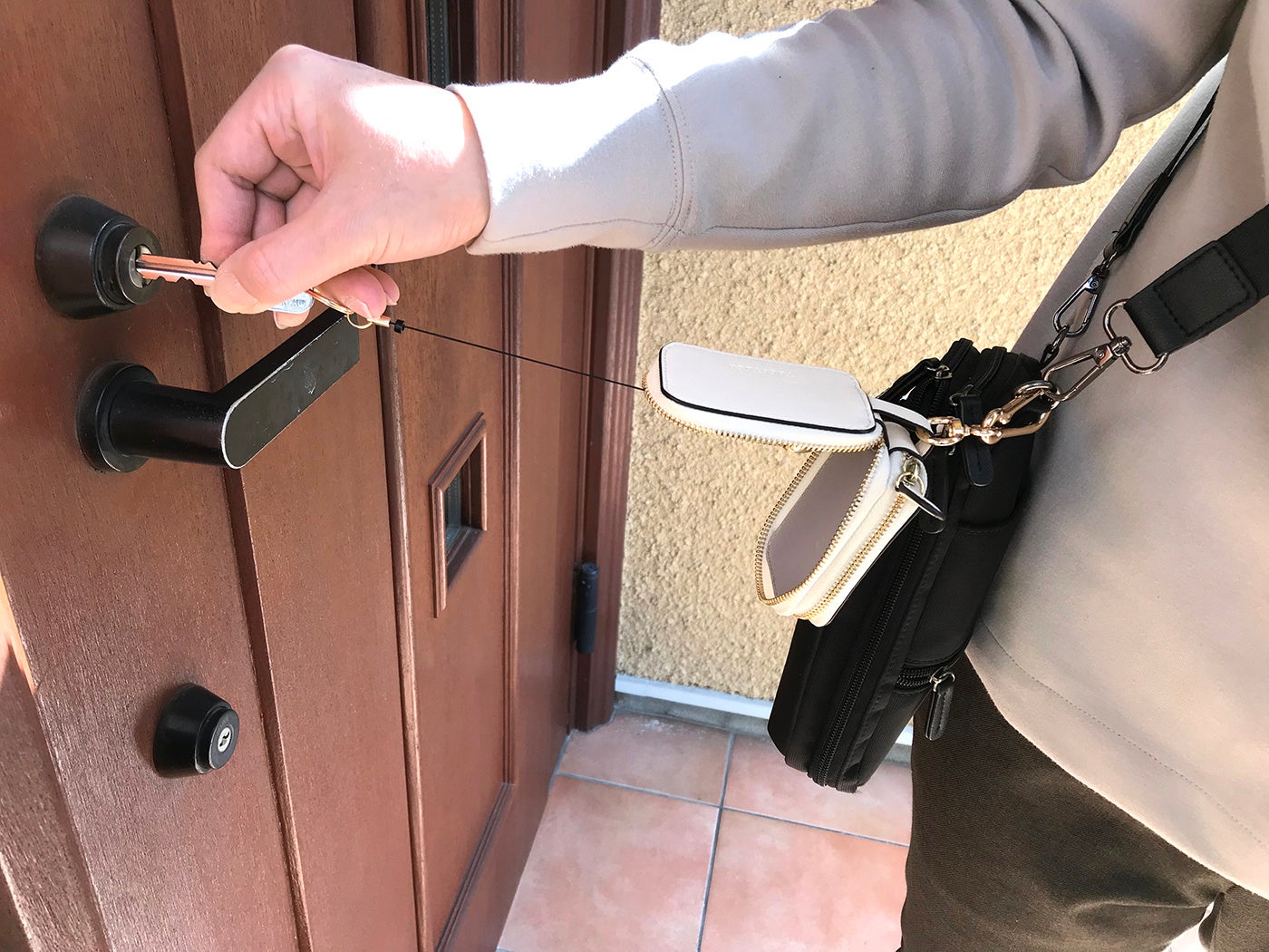 ■バッグのハンドルなどに取り付けた時にも そのまま鍵を使えてとっても便利!