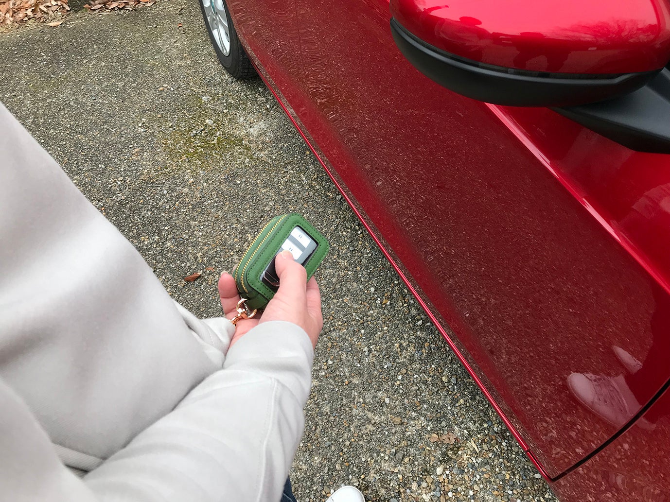 スマートキーも取り出さずに操作簡単!ダブルポケット収納で鍵はかさばらない!