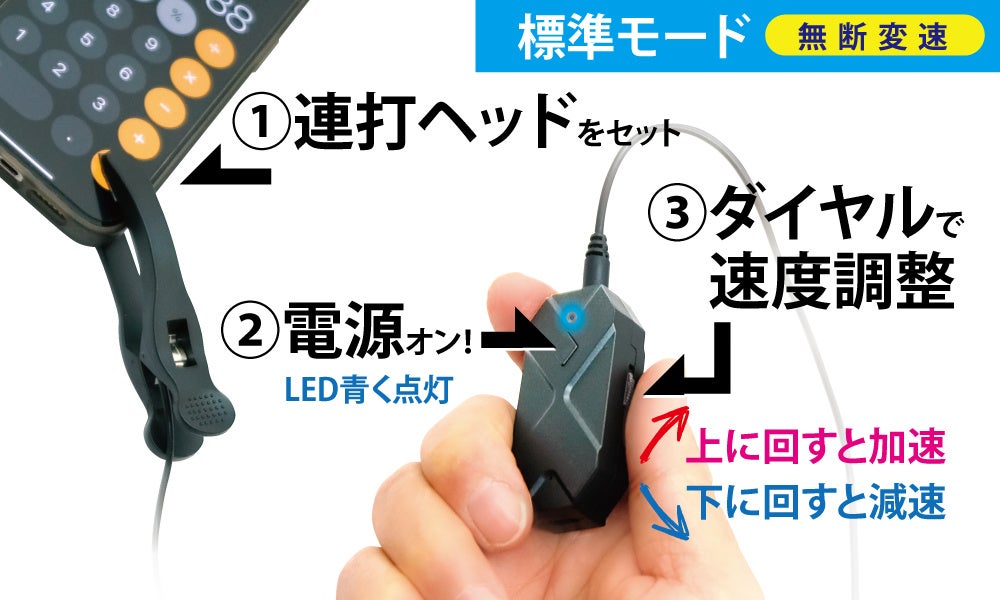 ※本体右側のダイヤルで連打スピードを調整(1秒間に1~30連打の範囲内)