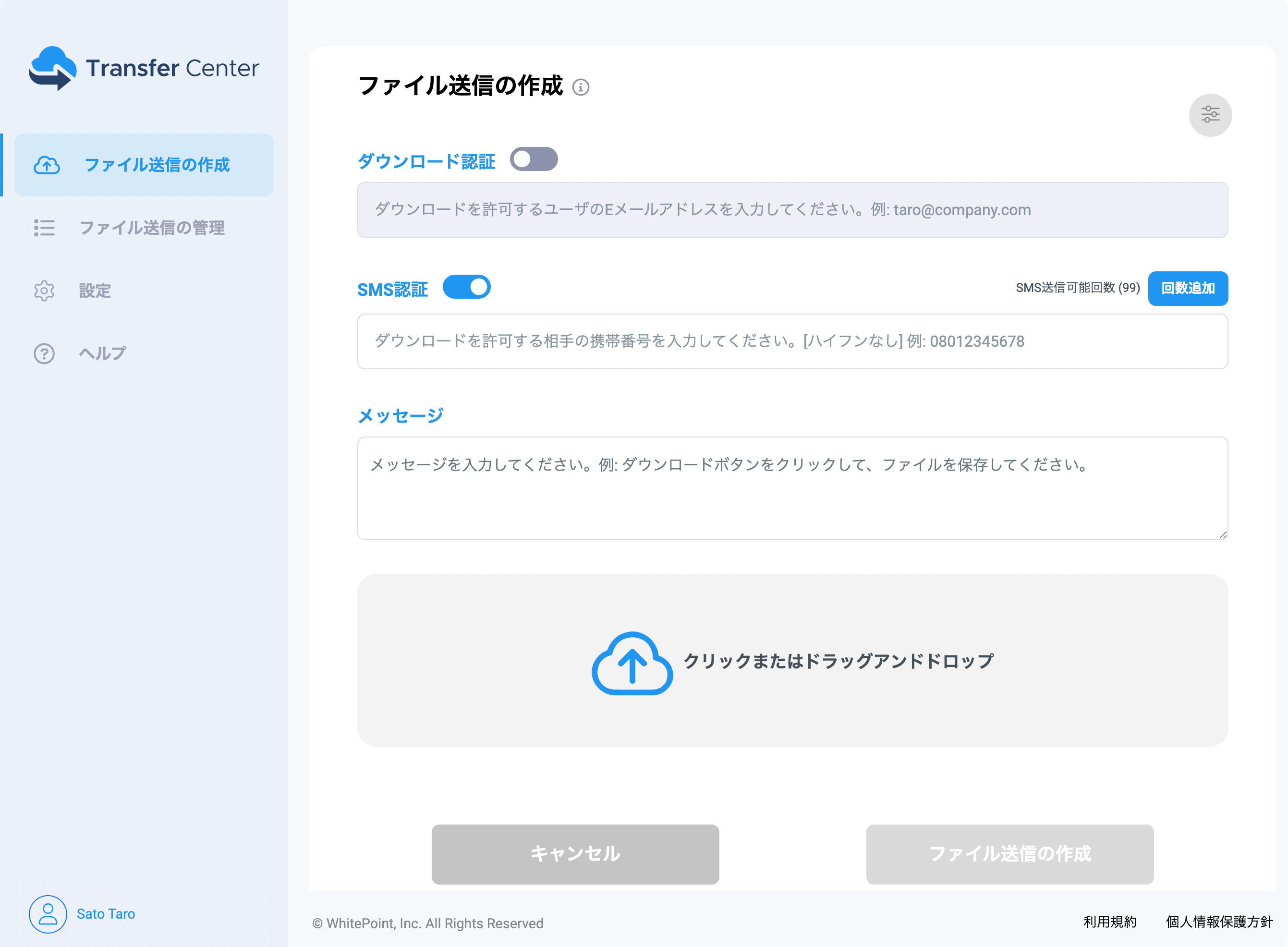 ホワイトポイント株式会社(所在地:東京都中央区、代表取締役:稲嶺 充毅)は、2022年10月11日より、大容量ファイル転送サービス「Transfer Center」において、新機能である「SMS認証機能」の提供を開始しました。