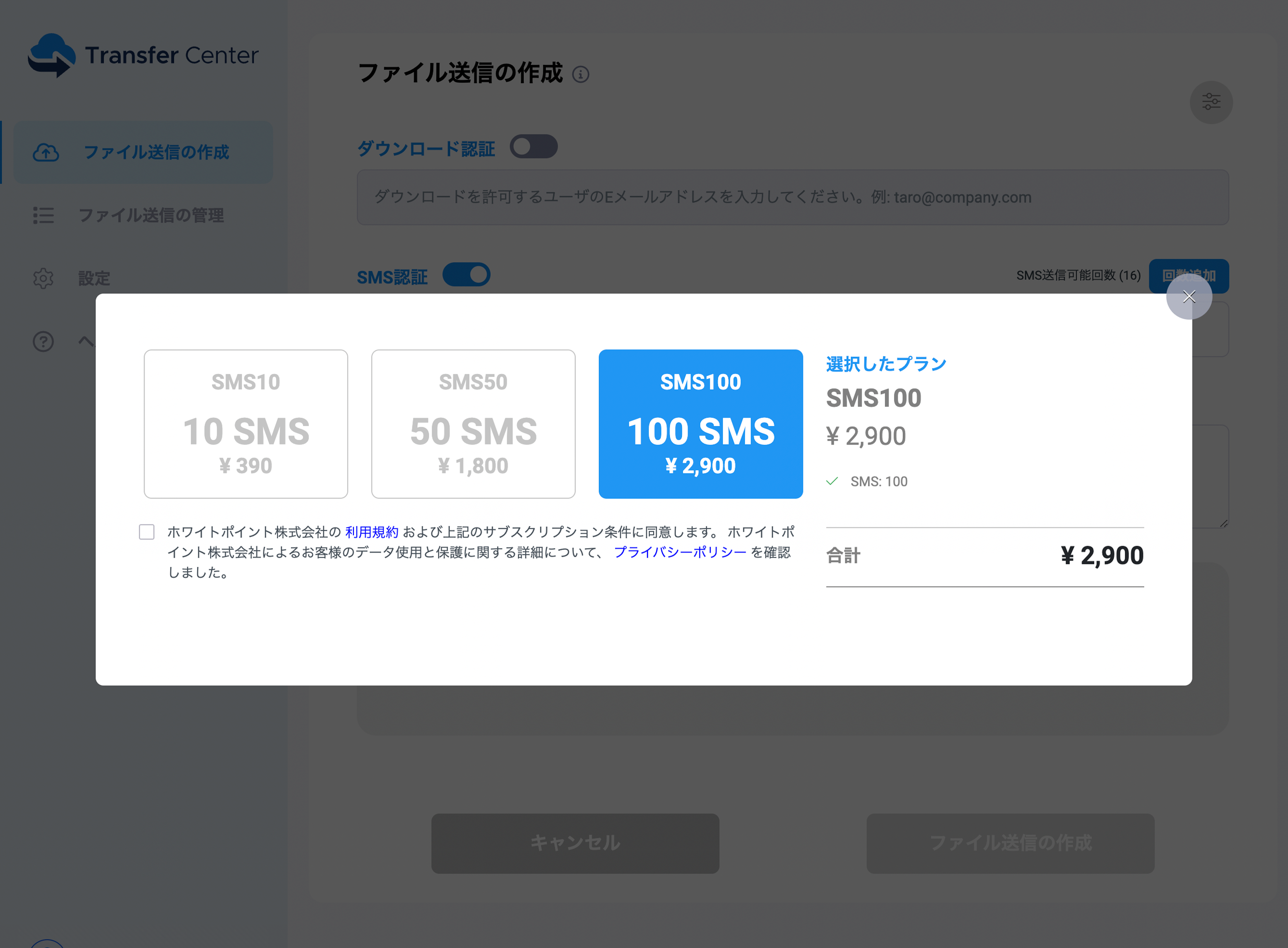 ■ 「Transfer Center」新機能の「SMS認証」について