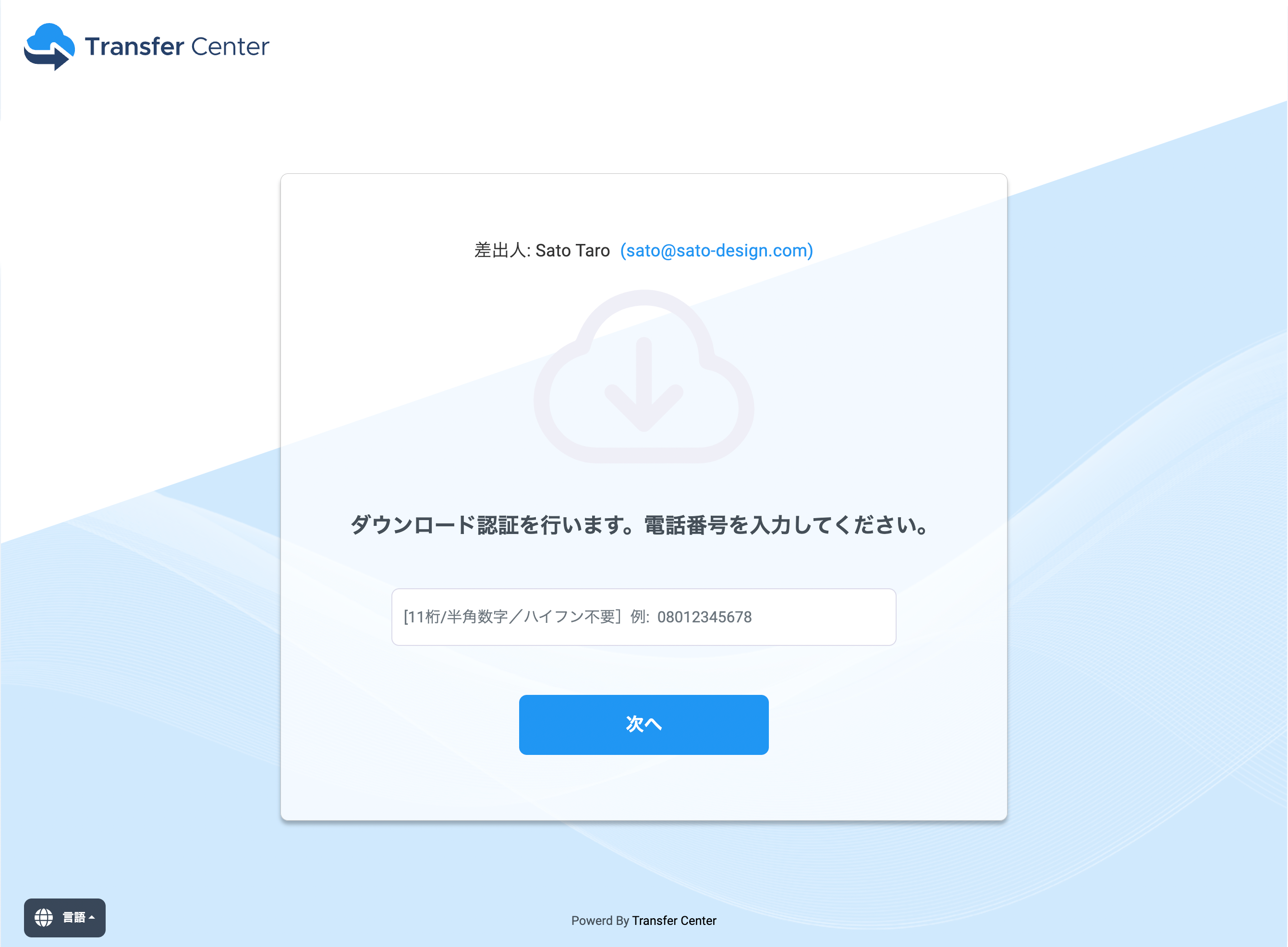 ファイル送受信サービス「Transfer Center」に実装された新機能は、ファイルのダウンロード時に受信者側でSMS(ショートメッセージサービス)による認証を行い、セキュリティの担保を行うものです。