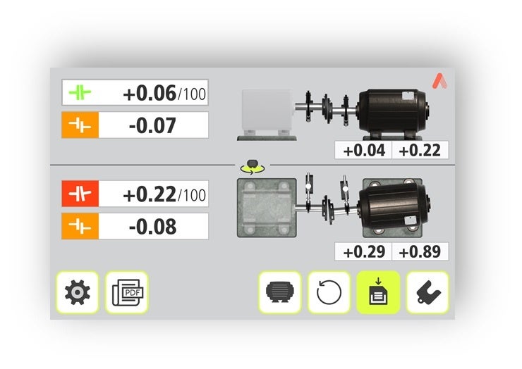 どのくらい、どちら方向へ動かせばよいのか一目瞭然です。調整前と調整後の情報はpdfファイルとして保存できます。