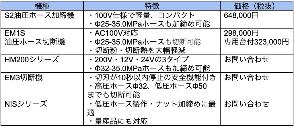 油圧ホース加締機・切断機購入で最大10万円分のホース・継手をプレゼント