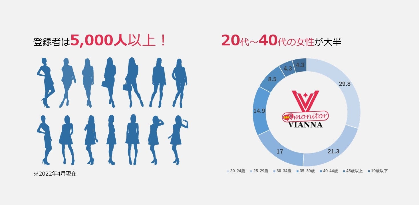 VIANNAモニターの希望者リストは5,000人以上(2022年4月現在)で、その多くが20代~40代の女性で構成されています。主要な都市圏のモニター募集については100人単位の募集も可能です。また、希望者リストの中にはインフルエンサーが多数在籍していますので、治療提供後にモニター本人のSNSをはじめ主要な口コミ・レビュー媒体への投稿も期待できます。