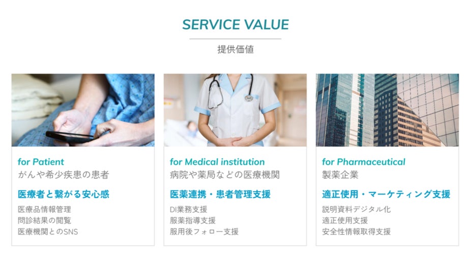 抗がん剤や希少疾患を中心とする高額医薬品を対象に、製薬企業が持つ資料や治療に関するノウハウを調剤薬局および病院の医療従事者が処方情報と紐づけて活用できる医薬品情報プラットフォーム「MediFrame」事業を展開しています。