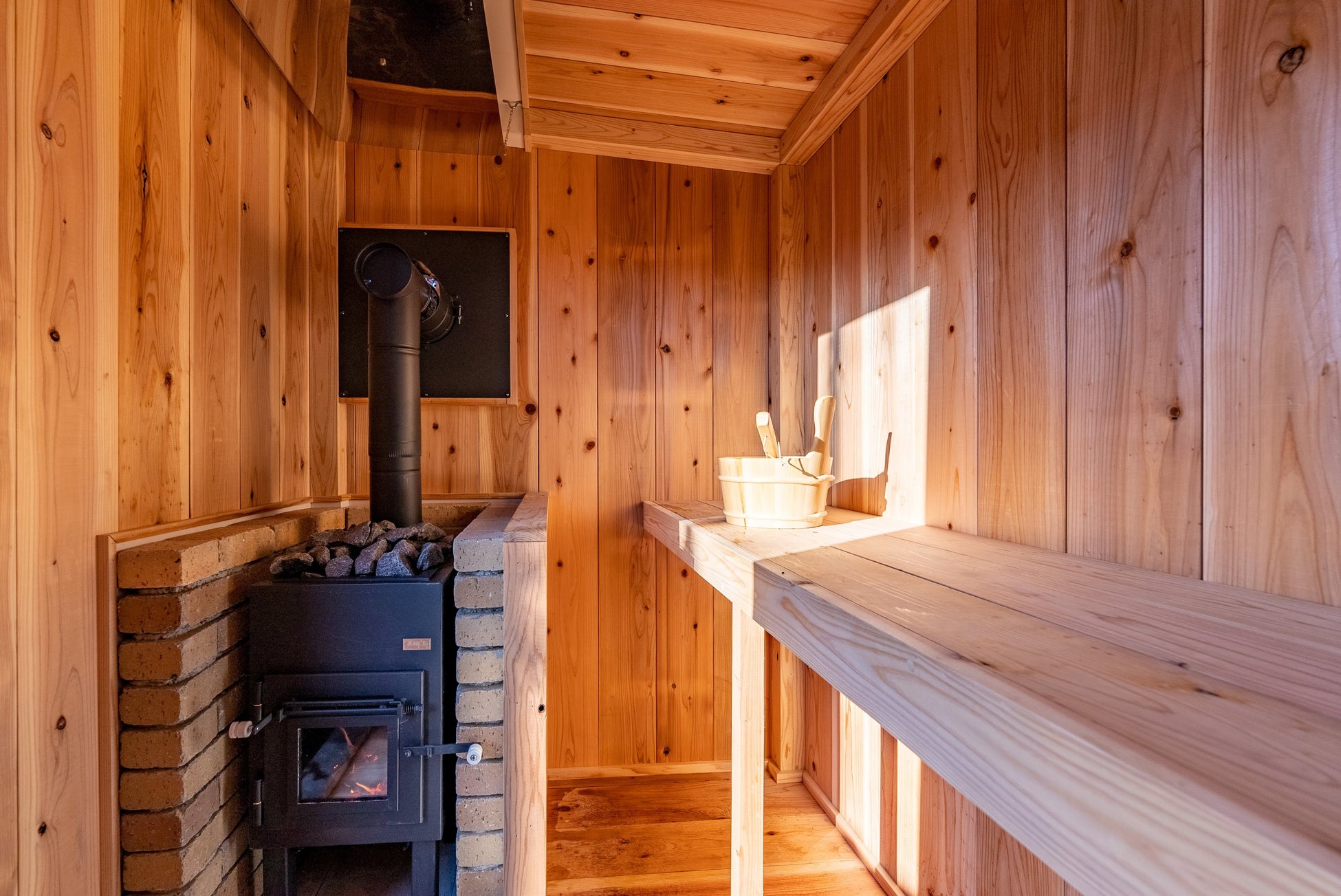 左:ウイスキー樽の水風呂 右:バレルサウナ