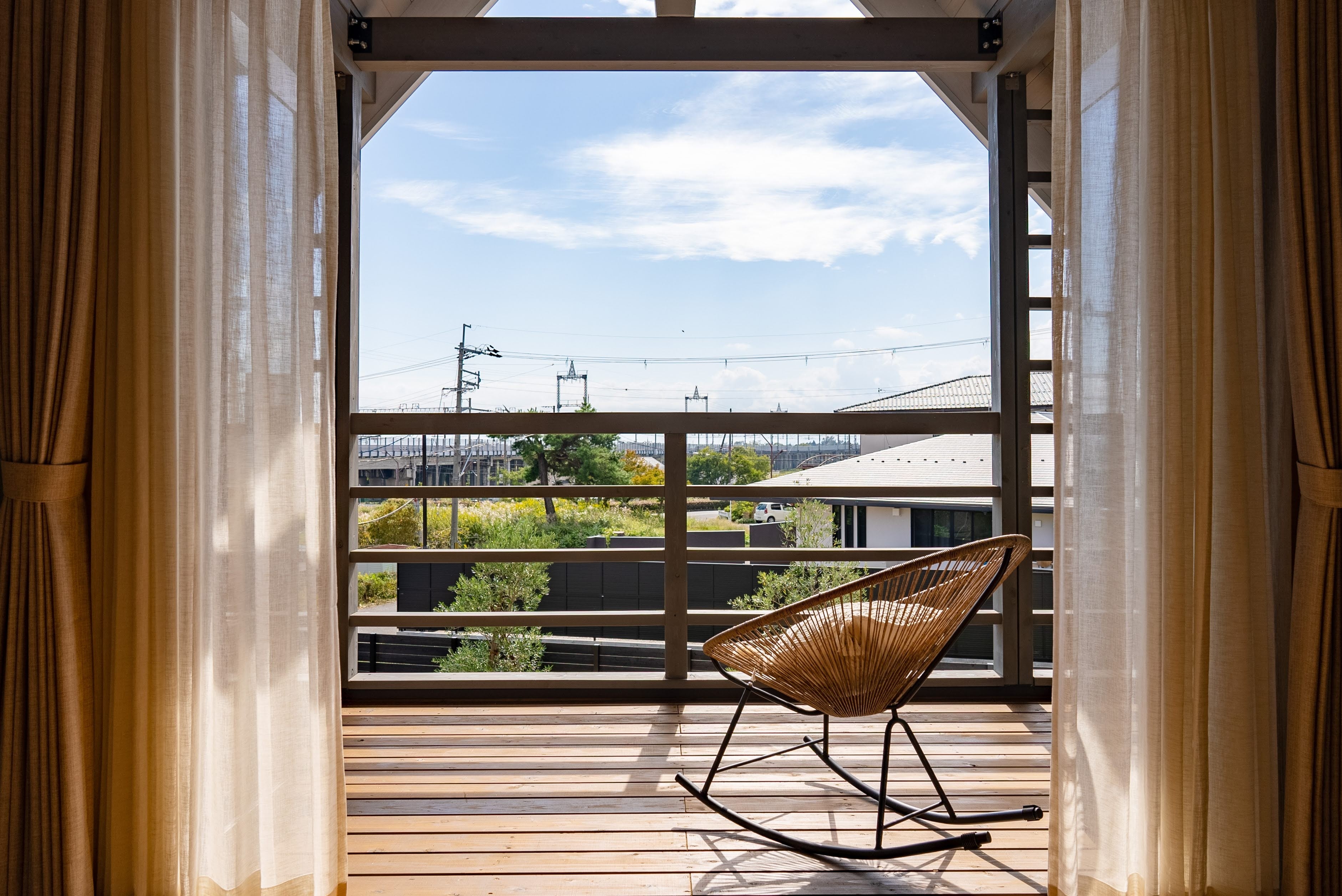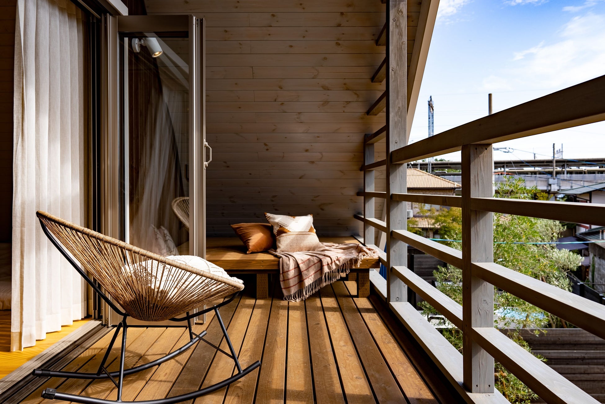 円筒の形をしているので、熱の周りがよく均等に伝えられるのが特徴で、木のぬくもりと香りに癒やされながらお楽しみいただけます。加えて、贅沢な気分に浸ることができるジャグジーやウイスキー樽で作られた水風呂も完備しています。サウナ以外にも、広いお庭でBBQをしたり、NIDO(ベランダ)にあるデイベッドでゆったりとした時間を過ごしたり、楽しみ方はさまざま。nagiは最大10名様まで宿泊可能となっております。