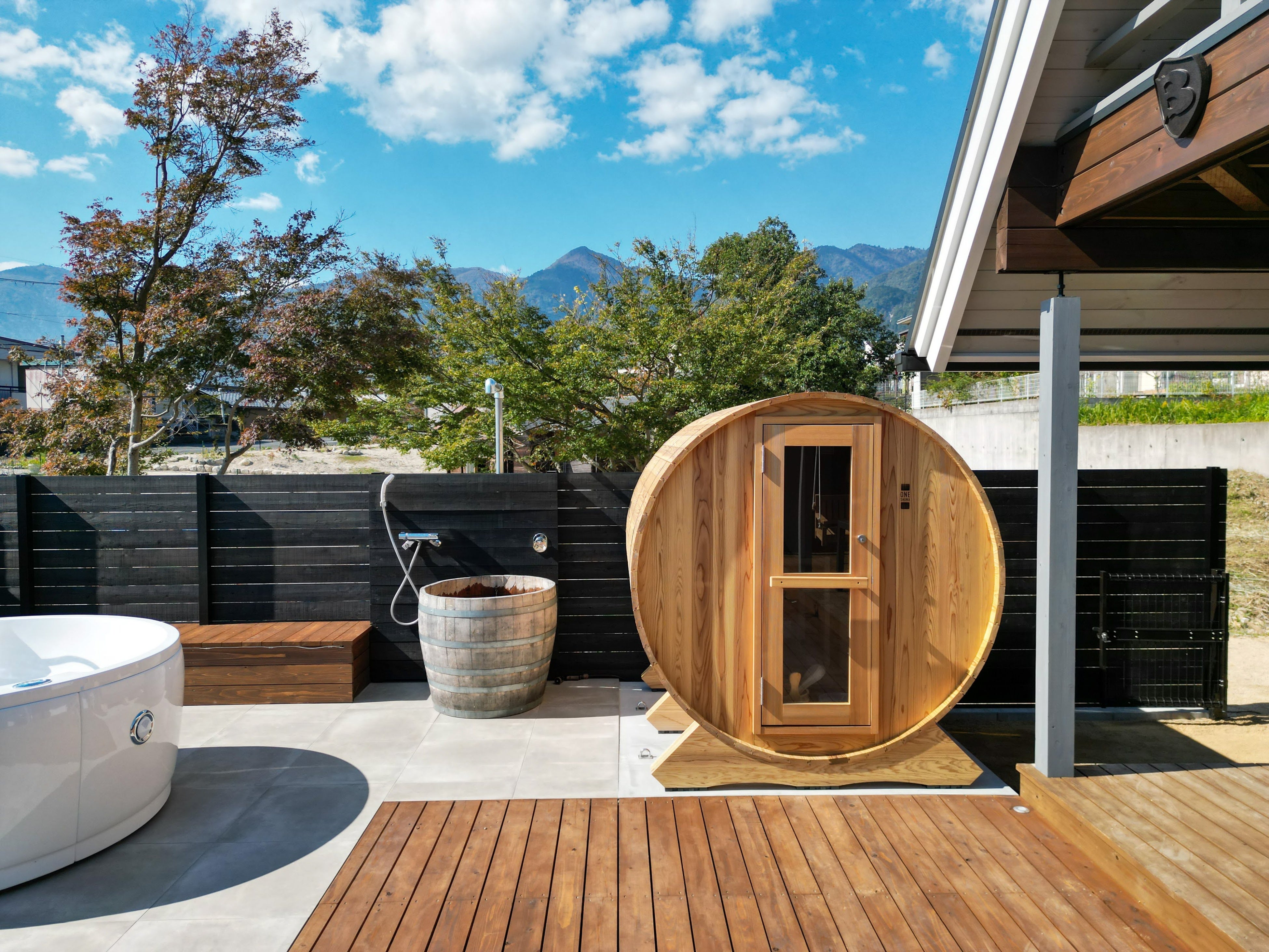 フィンランドに古くから伝わる、樽(バレル)の形をしたサウナルームを併設した「凪(nagi)棟」