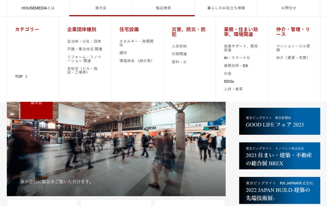 HOUSEMEDIAは様々な展示会のメディアパートナーとしても活動しており、展示会出展企業の製品やサービスを主催社企業協力のもと動画取材を行い情報を公開しています。