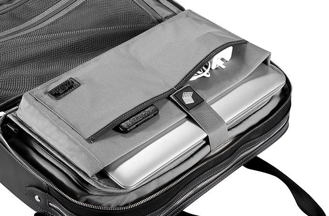 ラップトップポケットがあり、ノートパソコンやITデバイスもも出し入れしやすい構造です。