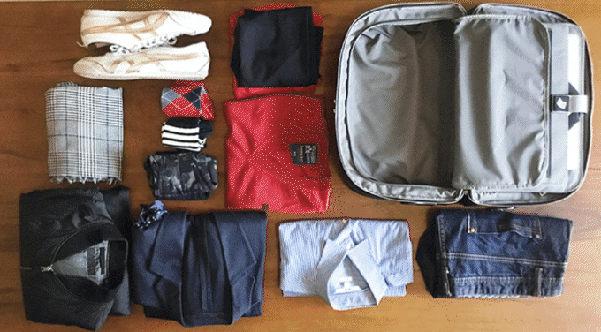 - まるでスーツケースのようなトラベルバッグ。機内持ち込みもできるのに容量もしっかり入る。