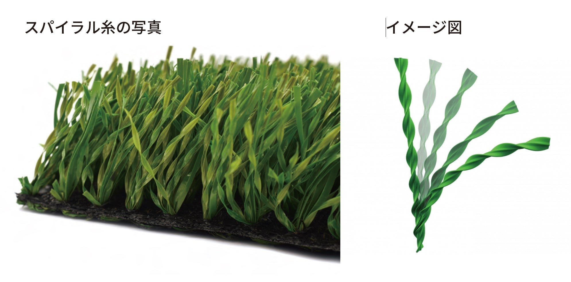 糸は螺旋状のため、ボールや選手の足で押されると、まるで天然芝のようにすぐに直立し、跳ね返ります。