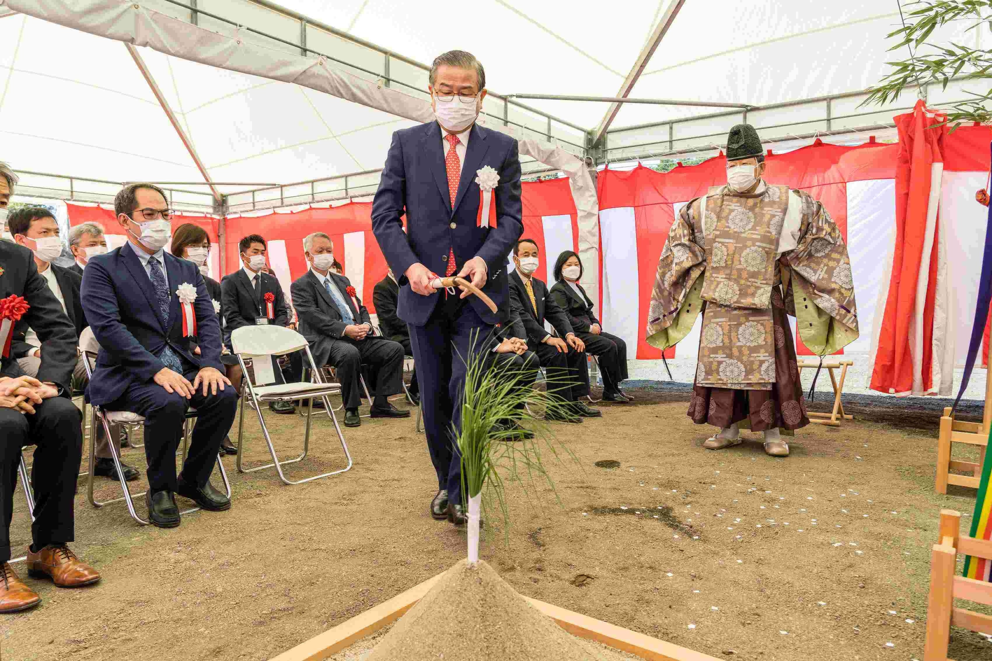 (株)フェローテックホールディングス(所在地:東京都中央区、代表者:賀 賢漢(以下「当社」)は、中長期で半導体産業の投資が活発化し、需要拡大が見込める「九州シリコンアイランド」の中心となる熊本県の大津町に半導体製造装置向け部材・サービスの新拠点(住所:熊本県菊池郡大津町杉水一ノ迫 2985 番1)を構築する予定です。2023年 3月2日 (木)に生産新拠点用地にて、地鎮祭を執り行いましたのでご案内いたします。当日は、当社の賀賢漢代表取締役社長(以下、「賀社長」と言います。)を始めとする弊社関係者、熊本県関係者、大津町関係者、その他ゼネコン関係者、メディア関係者などが参列いたしました。