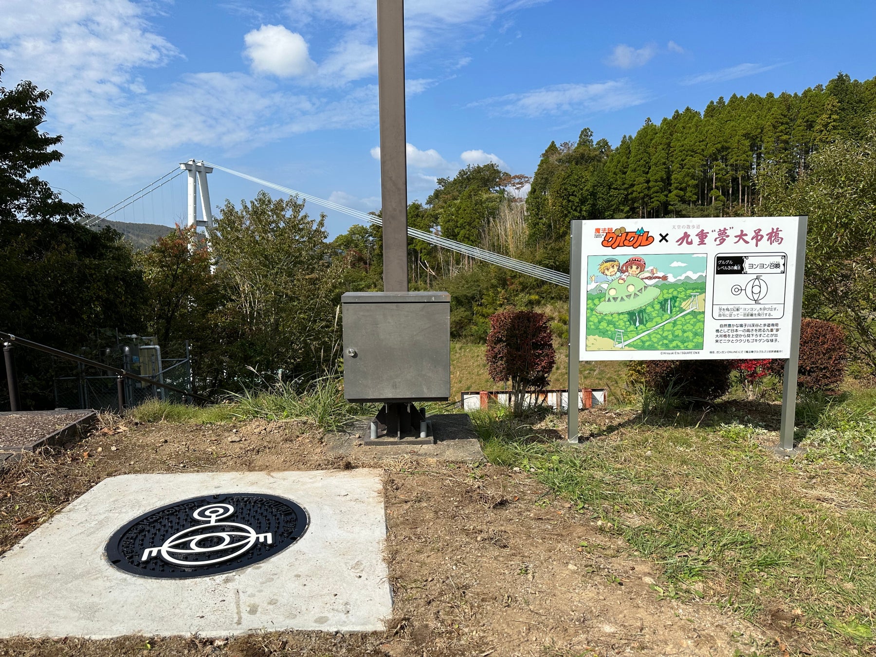 滞在型観光を促進している九重町として、九重“夢”大吊橋は訪れた人がついつい足を止めてしまうスポットのひとつになればいいなという願いを込めて、マンホール化しました。