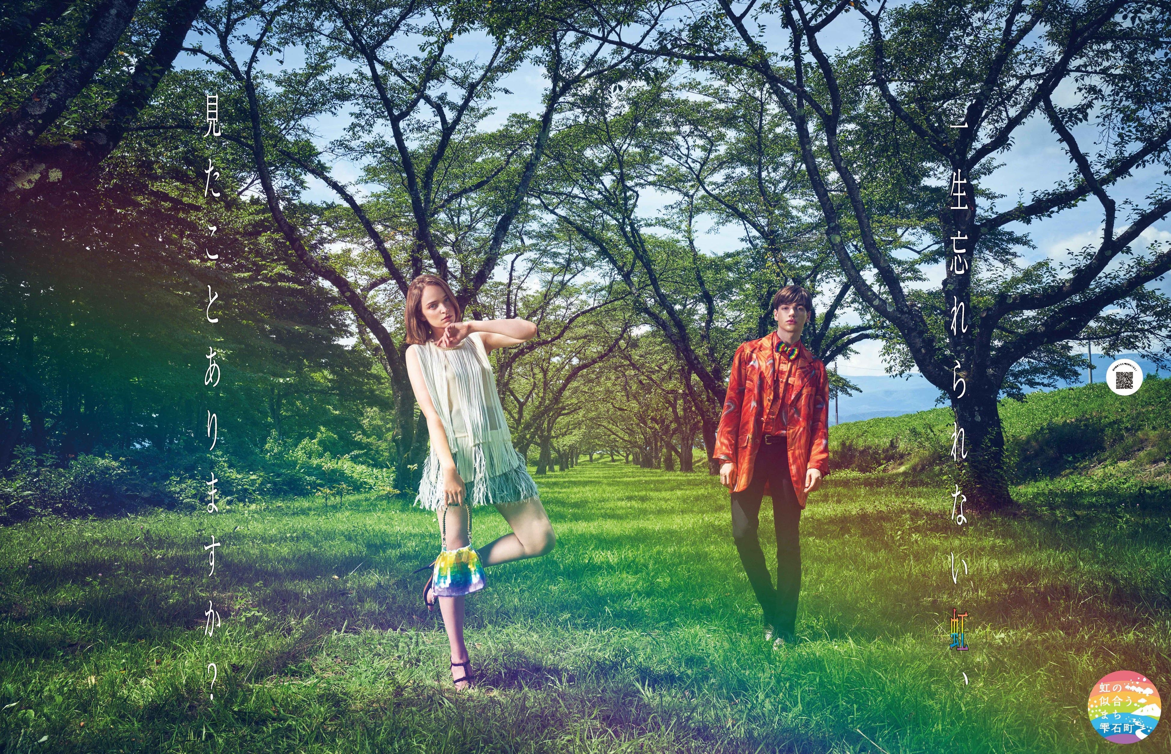 まるでハイファッションブランド!?虹の似合うまち 岩手県雫石町が、美しい自然を舞台におしゃれすぎる広告を渋谷駅で掲出! 〜虹とともに、町の豊かな感性を表現〜