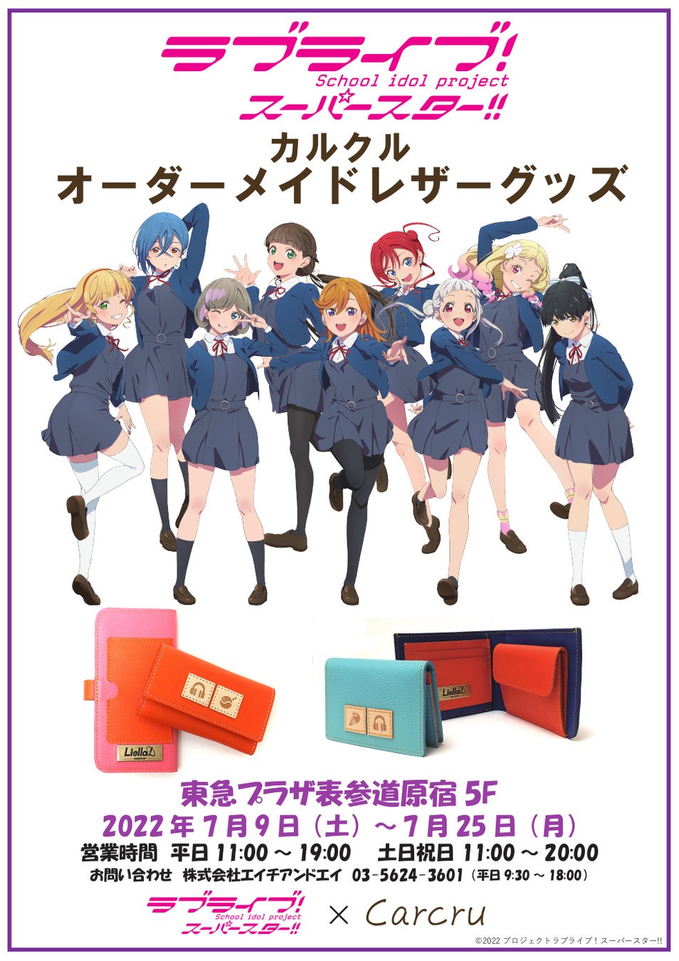 株式会社エイチアンドエイ(本社:東京都墨田区 URL:https://www.carcru.com/ )が運営する革小物ブランドcarcru(カルクル)は、「ラブライブ!スーパースター!!」とのコラボ企画、オーダーメイドレザーグッズのご注文受付を7/9(土)より東急プラザ 表参道原宿 5F特設会場にて開催いたします。