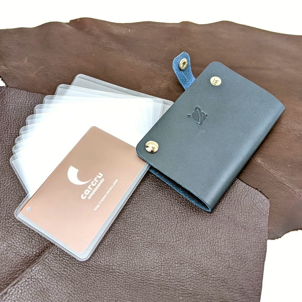 カード収納部分が扇形にスライド展開するため、カードが取り出しやすい牛革製ケース。
