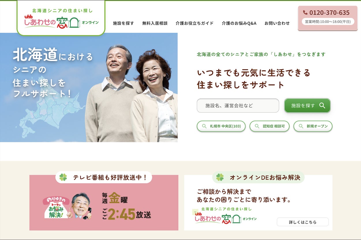 北海道文化放送(UHB)と、道内で介護関連事業を展開する、さくらコミュニティサービス(札幌市北区)は共同事業として、道内の高齢者向け施設の検索・入居のマッチングを行うWebサイト「しあわせの窓口オンライン」をスタートしました。