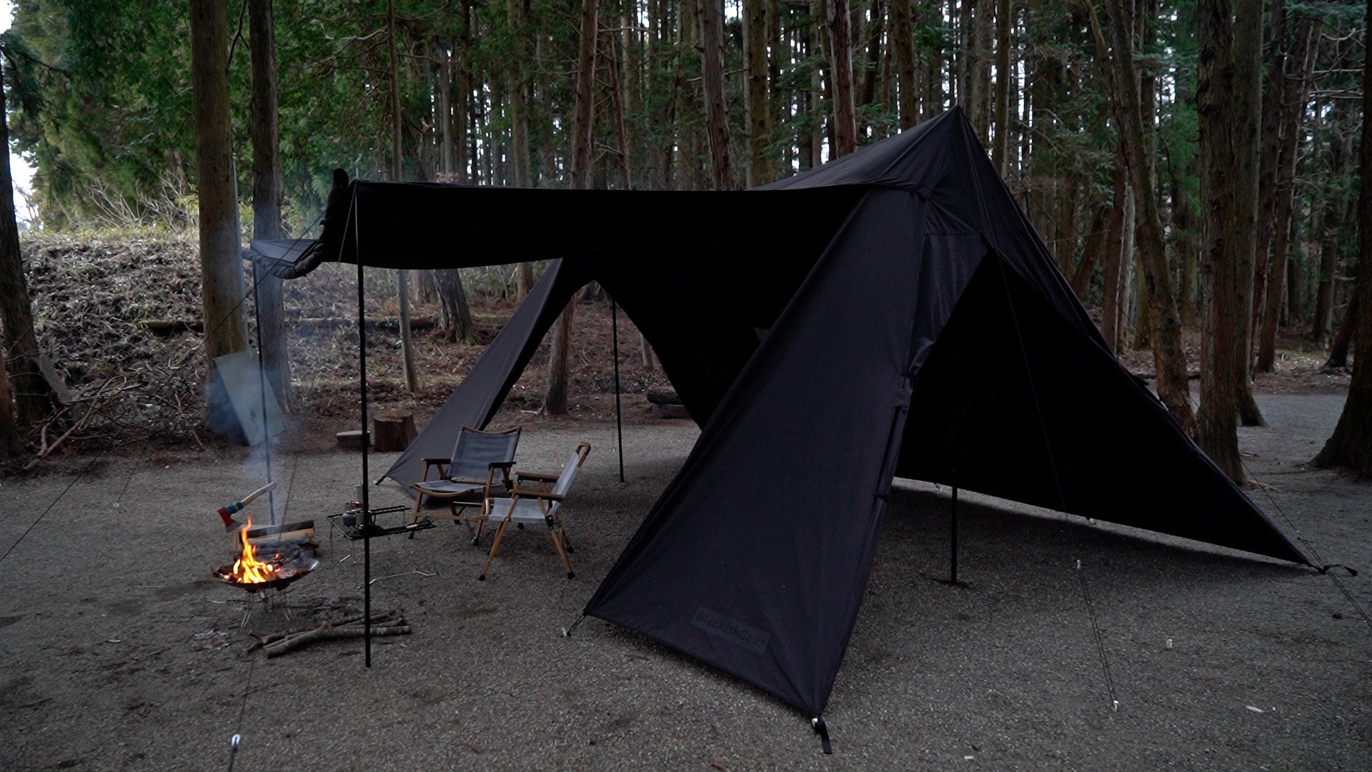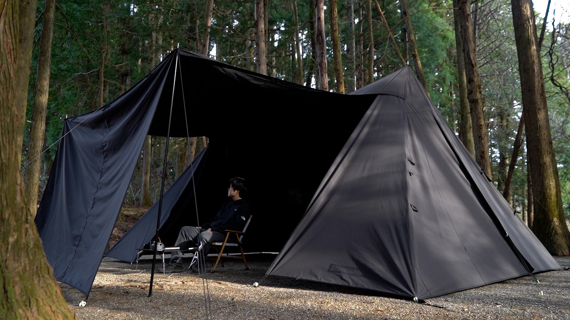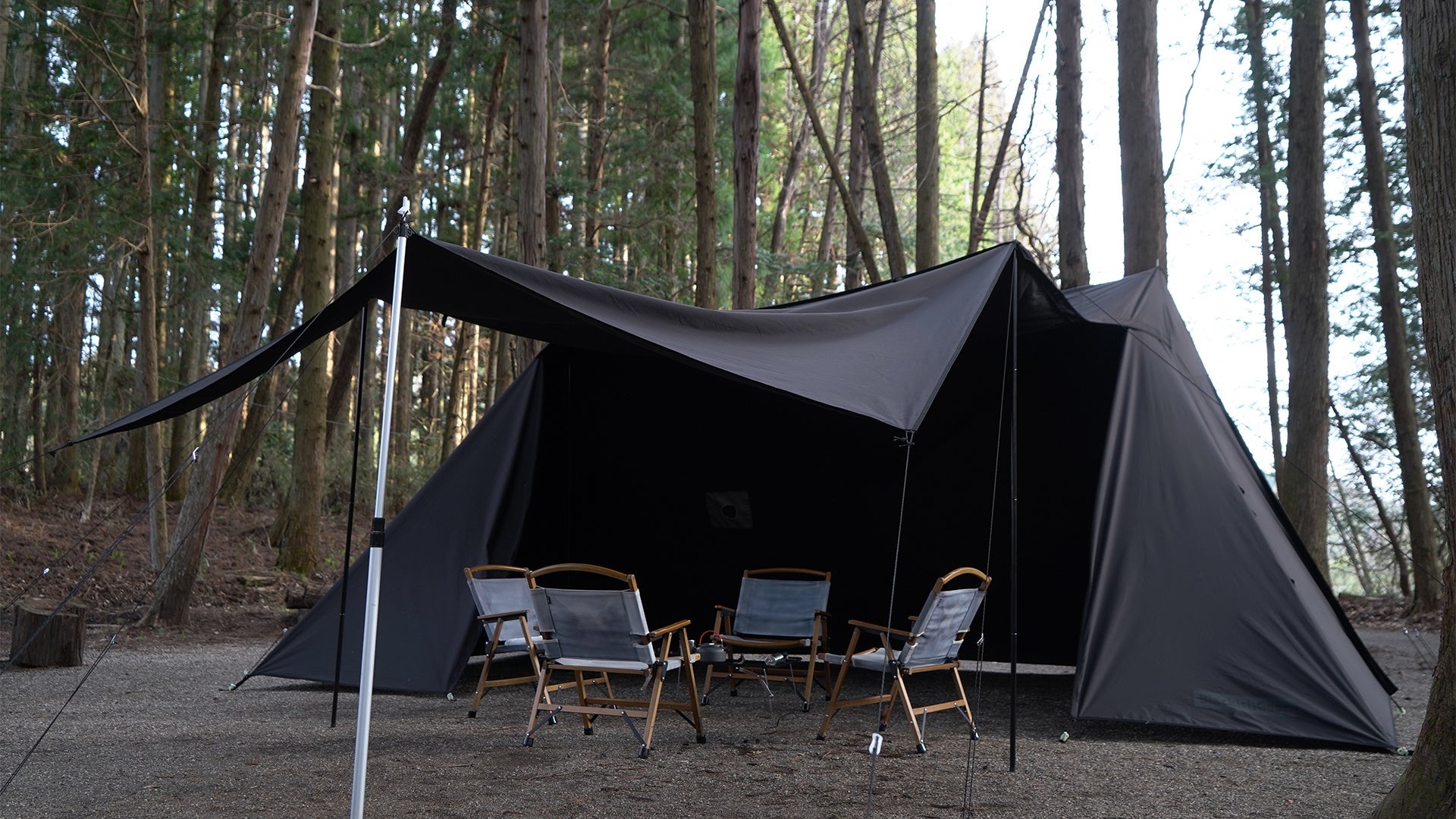 圧倒的な存在感と重厚感。黒い大型ツインポールシェルターテントが200張り限定で予約販売を開始!