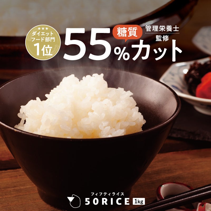 50RICEは、お米と一緒に炊くだけで、カロリー・糖質ともに最大55%カットできるダイエット米です。