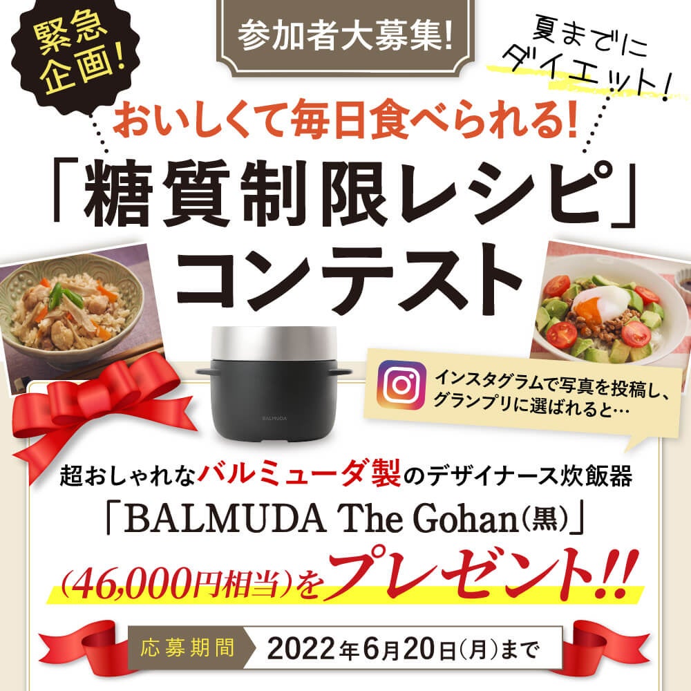 そこで、夏に向かって皆さんと一緒に楽しみながらダイエットを成功させるべく、その秘密の糖質制限レシピを是非シェアしてもらいたくInstagramにて本コンテストを企画しました。