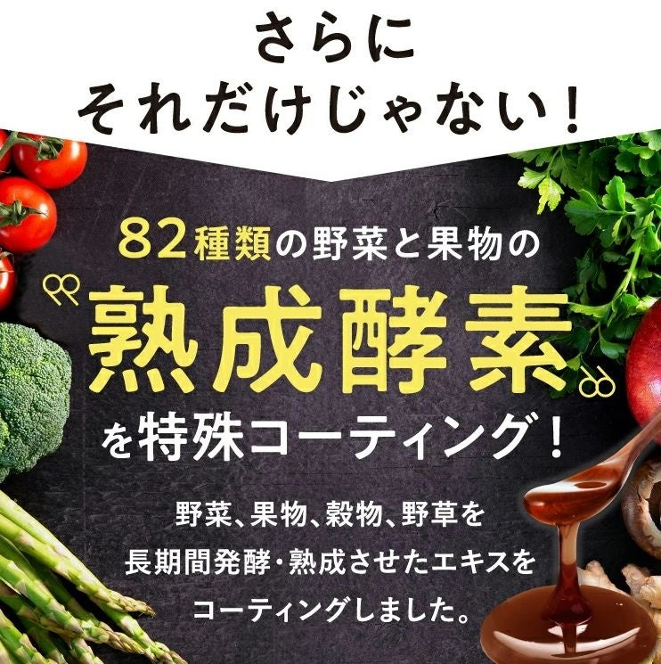 特徴3:82種類の野菜と果物の“熟成酵素”&“有胞子性乳酸菌”をコーティング