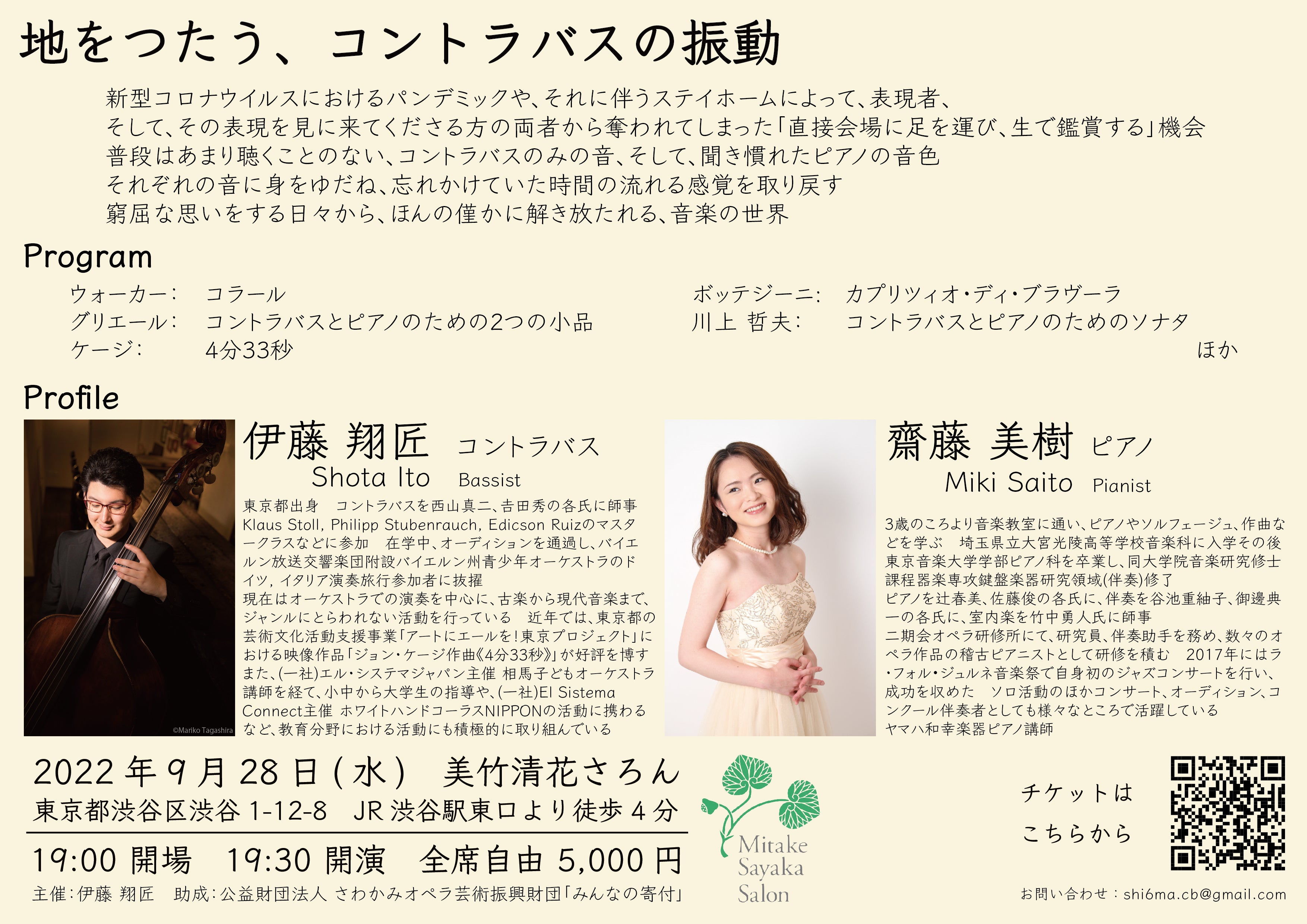 出演者:伊藤 翔匠(コントラバス), 齋藤 美樹(ピアノ)