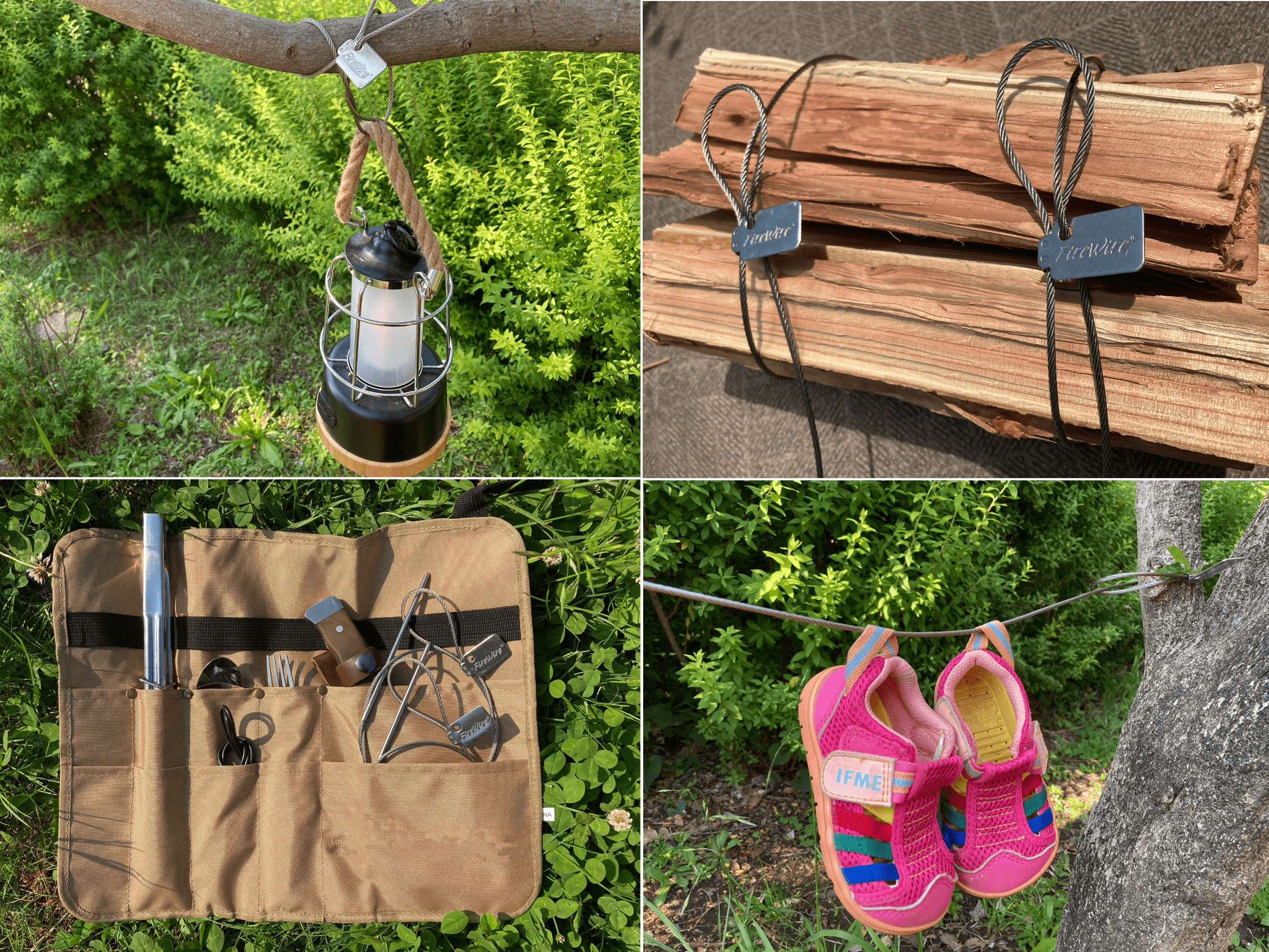 焚き火料理・燻製にも活躍する上に、料理以外に「薪を束ねる」「突然の雨で濡れた服を干す」など幅広いキャンプシーンでも役立つ新感覚アウトドアギアです。