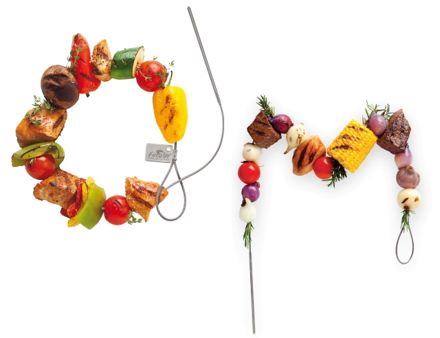 刺すだけで映える、盛り上がる!一般的な串の2倍の量をガッツリ刺して、まとめてひっくり返せます。グリルのスペースを有効活用して、火の通りを良くします。