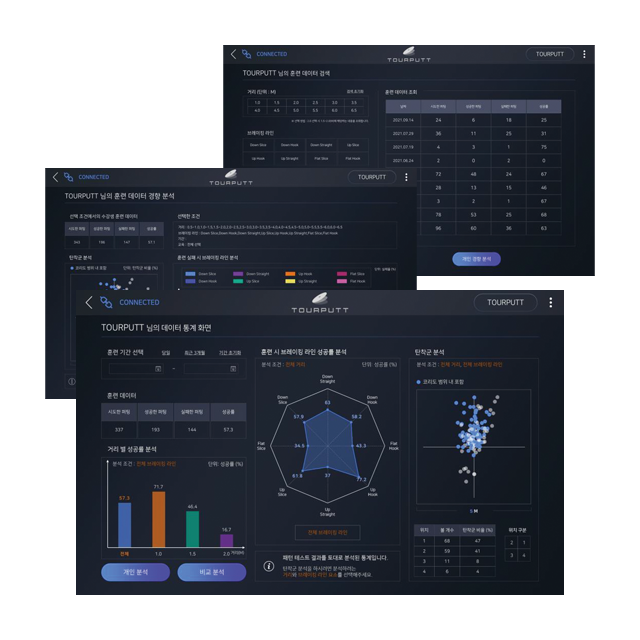 韓国国内トップを誇るパッティングレッスンアカデミー(チェ・ジョンファンパットアカデミー)のチェ・ジョンファンプロの指導ノウハウと拡張現実、AIとディープラーニング技術を網羅して開発されたパターシミュレーターとなります。正確なパターン分析とカスタマイズされたトレーニング、そして各プレイヤーのフックライン、スライスラインにおけるエイミング、アドレスの変化の癖や、ミスの傾向をチェック、距離感の打ち分けな