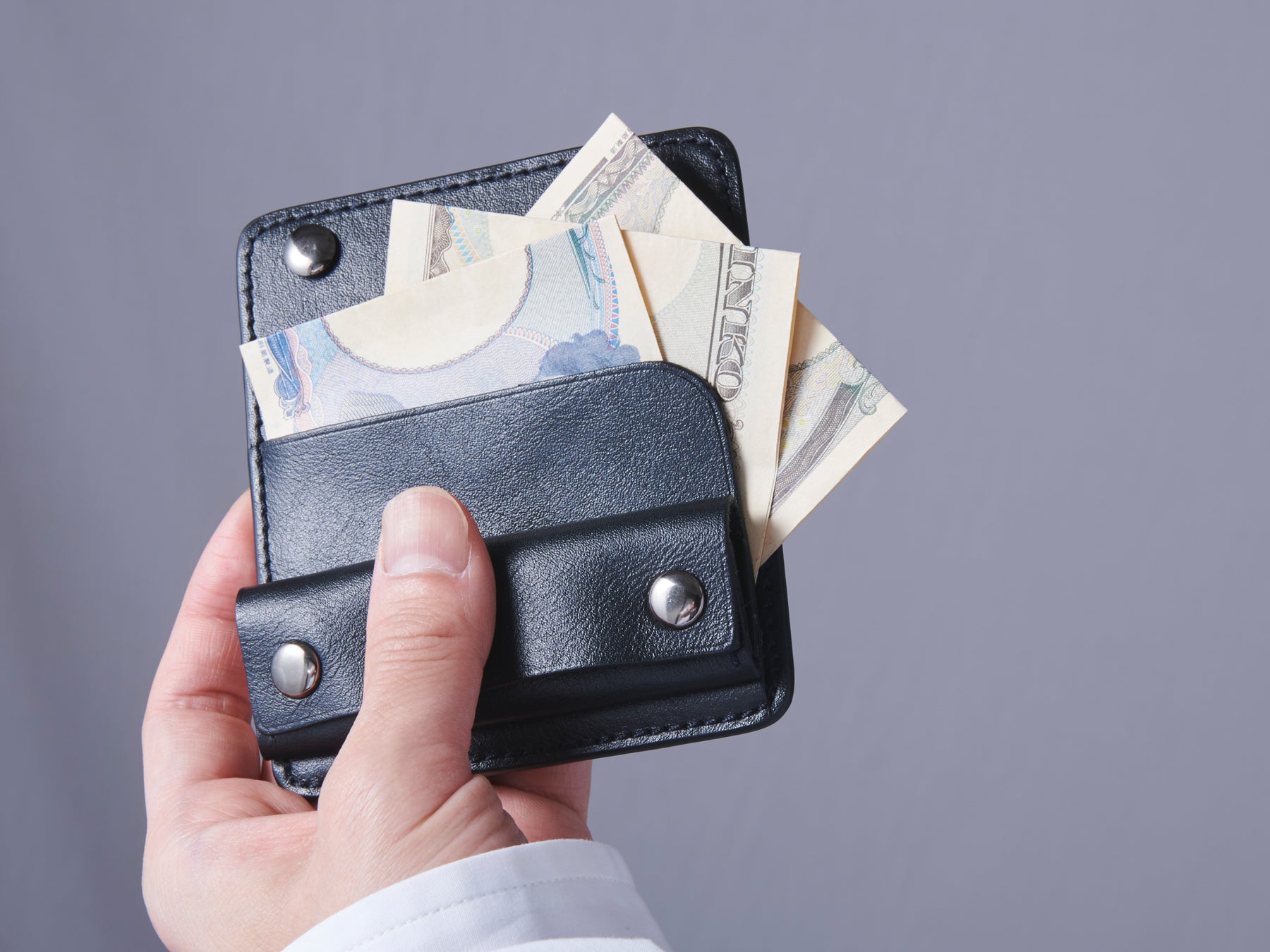 出し入れ簡単なマネークリップ感覚の札入れ。