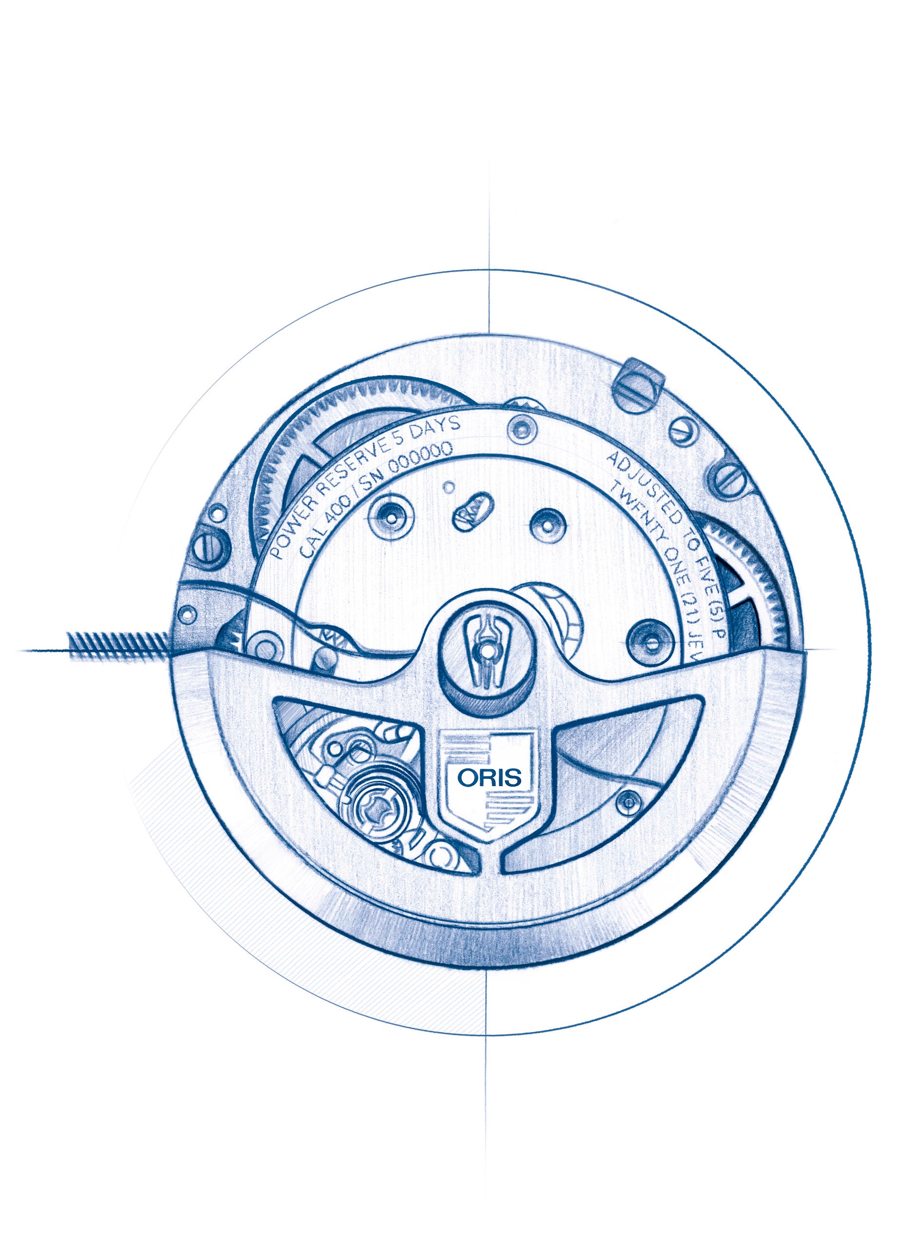オリスはキャリバー400につぎ込んだ最新技術とその機能性に自信を持っています。このムーブメントを搭載した時計は全て、MyOrisに登録することで10年間の保証が付与されます。また、キャリバー400の推奨オーバーホール期間は10年です。