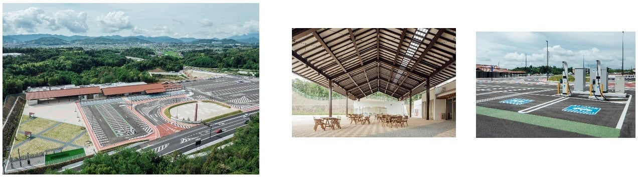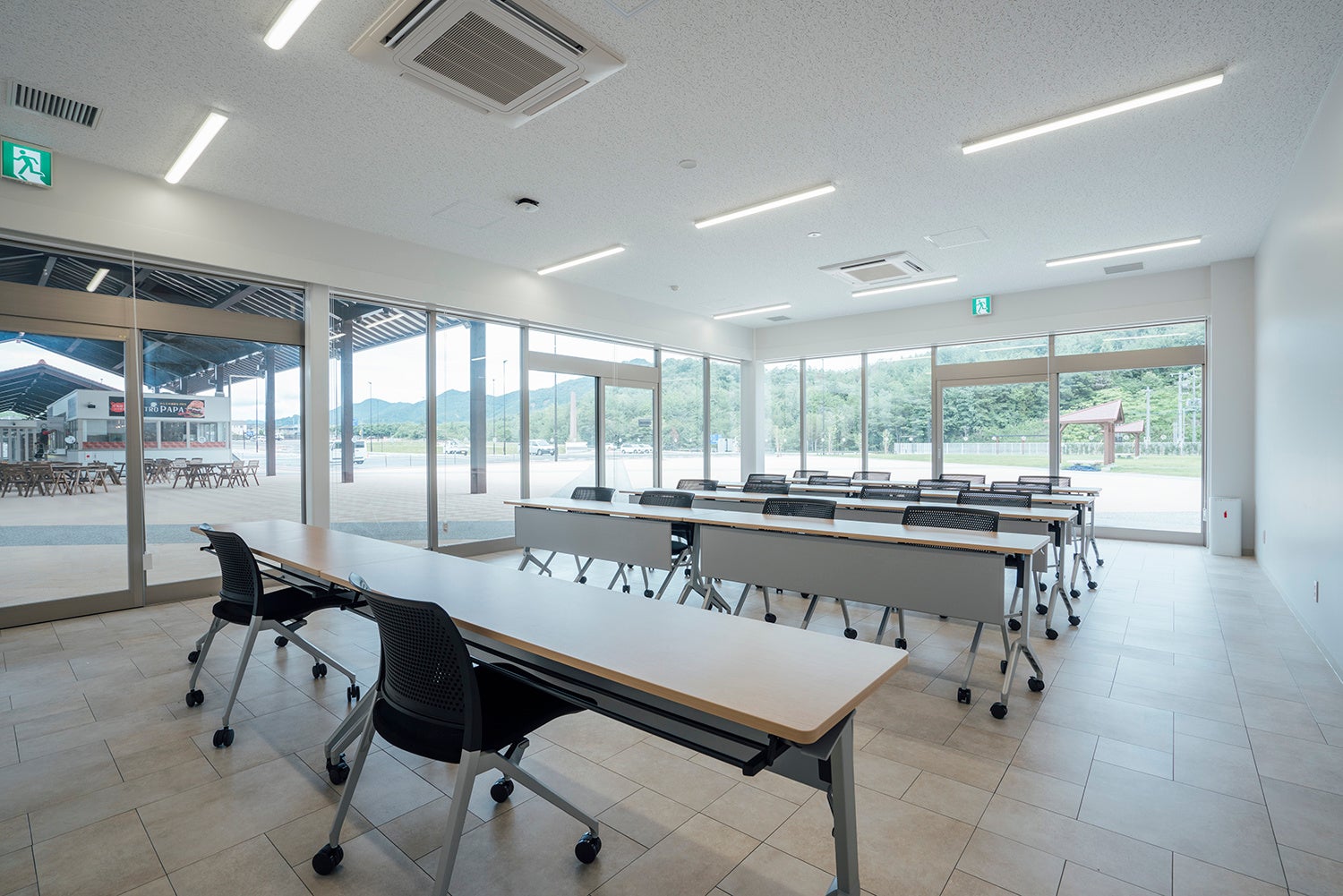 コンビニエンスストアや24時間ご利用いただける「情報発信施設」、「トイレ棟」、「シャワー室」も設置しています。「情報発信施設」は、道路の交通状況、地域の観光状況を知ることができるだけでなく、畳の子上がりの休憩スペースやベビーコーナーも備わっているため、小さなお子さま連れでも安心してご利用いただけます。シャワー室は男女別の個室とバリアフリータイプの3室完備。200円で10分使用可能です。