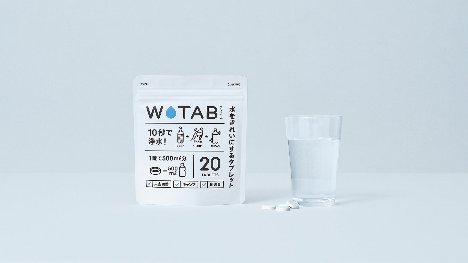 WATABは、災害やアウトドアの時に河川水などを誰でも簡単に浄化できるタブレットで、2022年4月4日に応援購入サイト「Makuake」にて先行販売を開始しました。