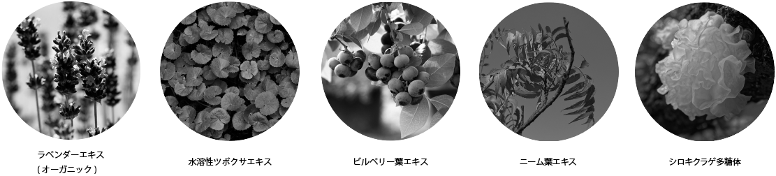 「AINOKI mebuki」の製品には、いきいきとした目元へと導くために厳しい自然環境の中で育まれた植物成分が欠かせません。ブルーライトから目元をケアするビルべリー葉エキス、高保湿でヒアルロン酸を含むシロキクラゲ多糖体、また、抗炎症効果のツボクサ葉エキス、“奇跡の木”と呼ばれるニーム葉エキスも配合しています。