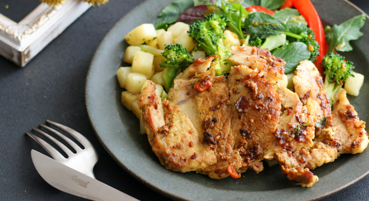 【豚のタスカンステーキ & グリーンベジタブルソテー】