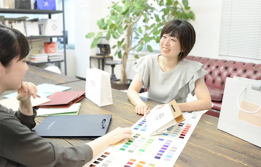 豊富な資材や製作実績を見ながら、きめ細かなお打ち合わせをしていただけます。