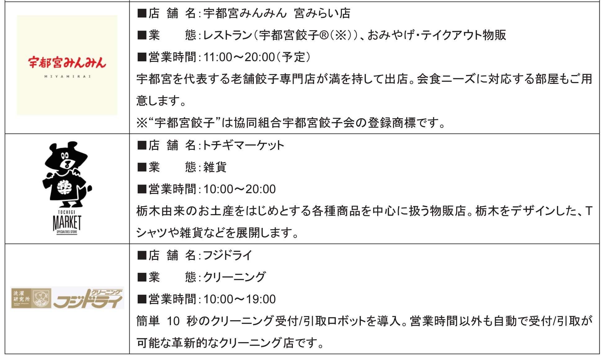 Utsunomiya Terraceの開業日にあたる8月26日(金)には、開業を記念したセレモニーを実施する他、8月26日(金)~28日(日)の3日間は、本施設でお買い物をしていただいた方を対象とした抽選イベントを実施するなど、施設を訪れていただいた方にお楽しみいただける企画を予定しています。